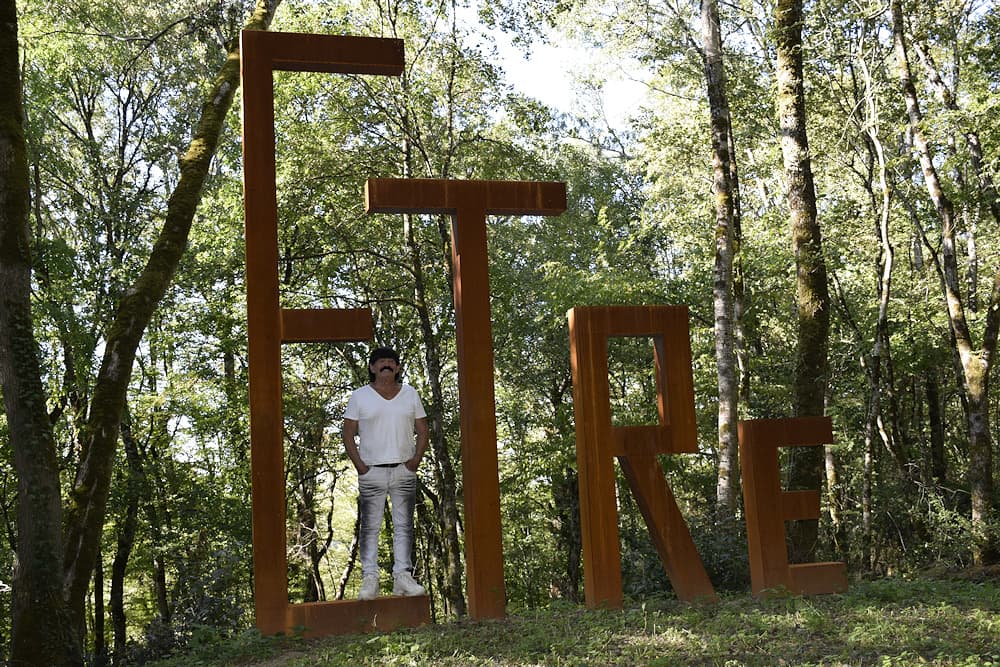 et une sculpture H : 10 m, poids une tonne en acier corten. Ateliers Triometal.